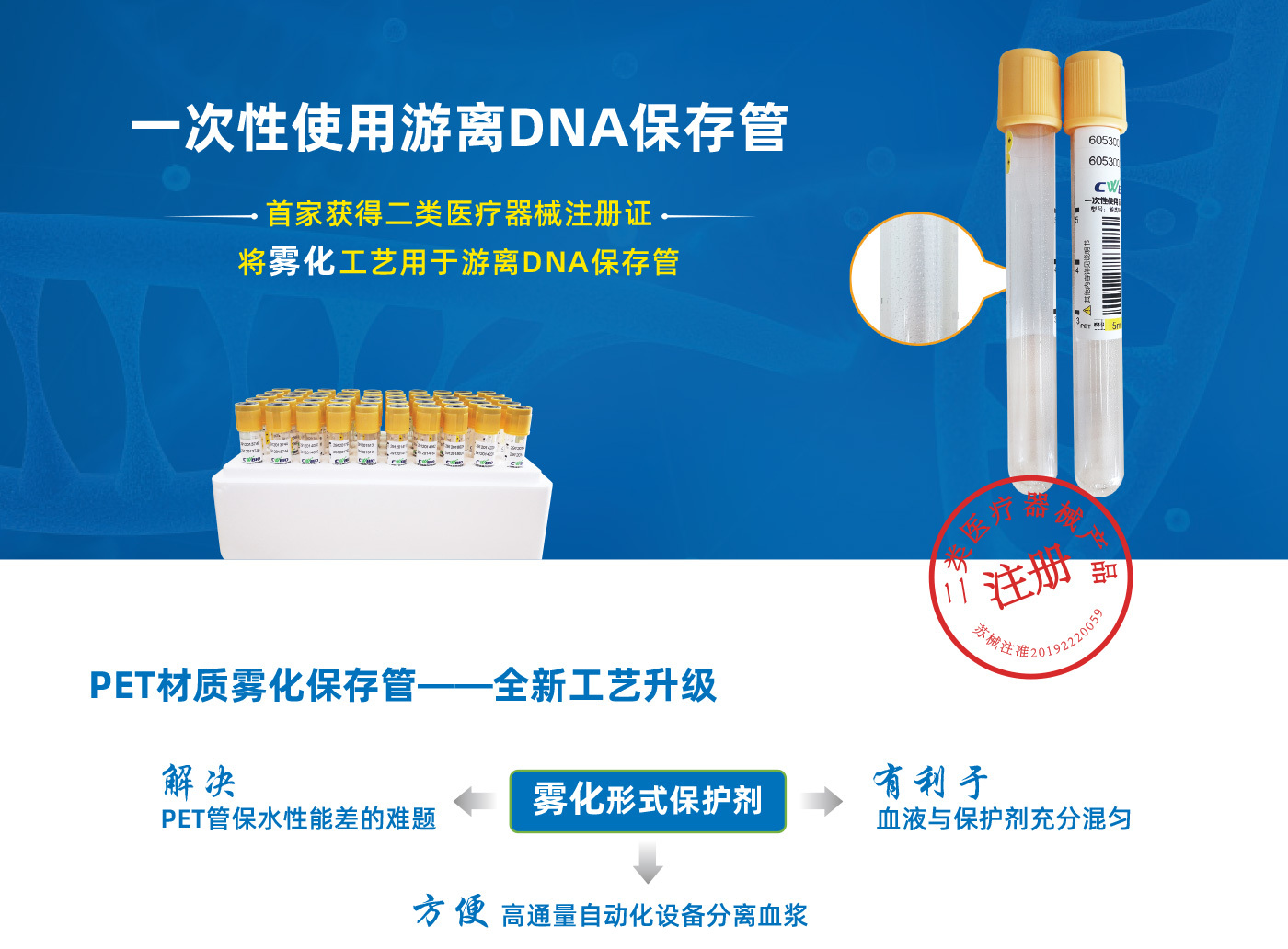 首家获得二类医疗器械证“一次性使用游离DNA保存管”,助力产前筛查和肿瘤检测市场!