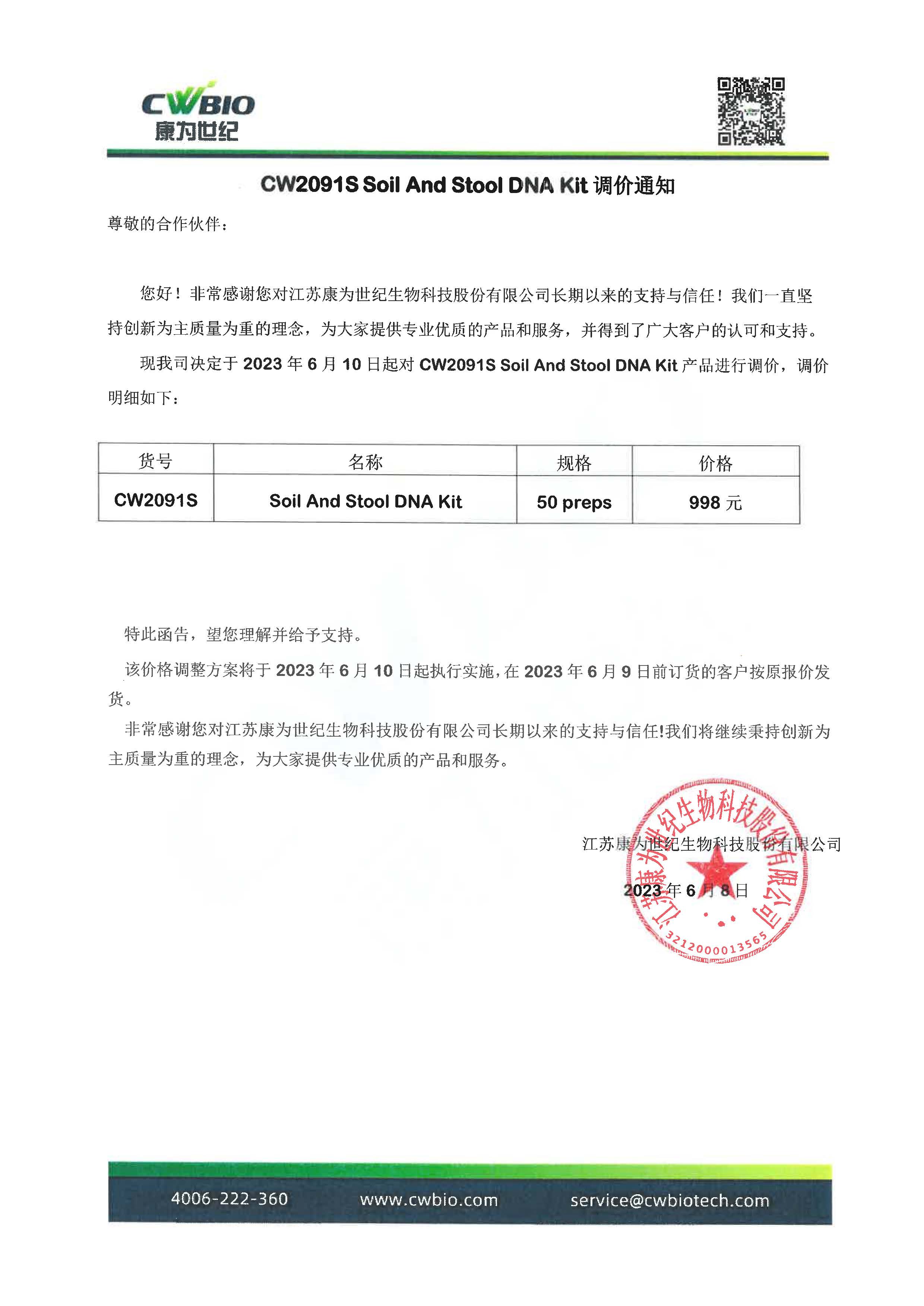 CW2091S 产品调价通知