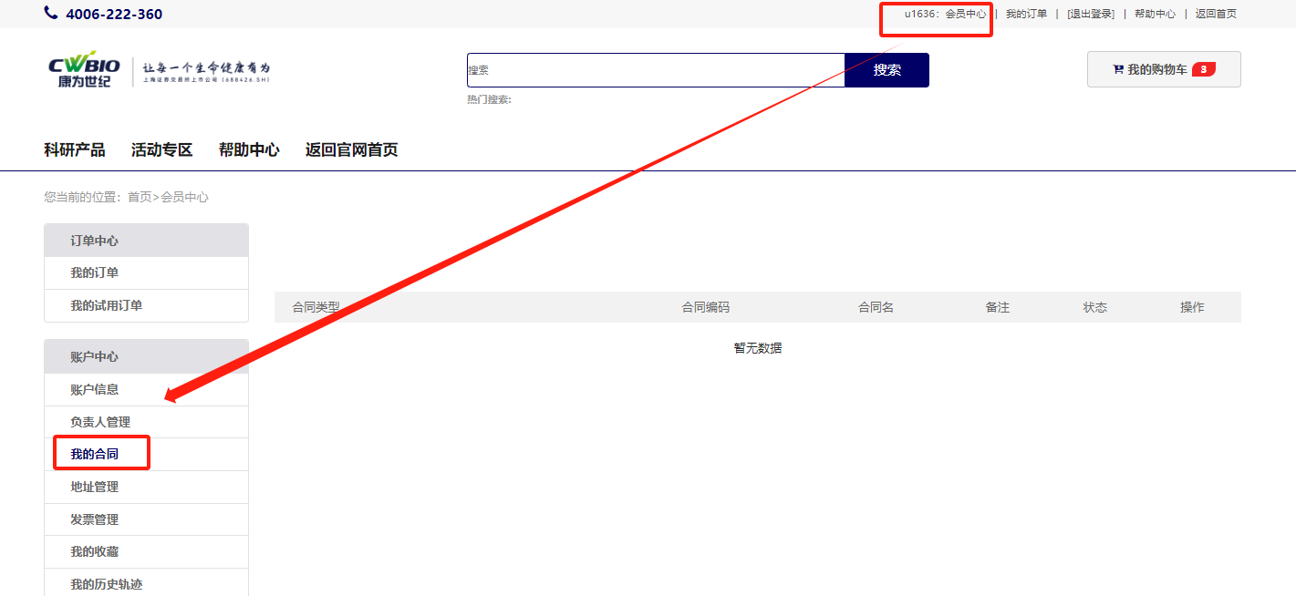 进入会员中心,左边菜单栏【账户中心】点击【我的合同】进行查看,点击查看下载